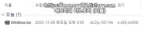 아까 지정했던 저장 위치로 가니 이렇게 "windows.iso"라는 파일이 만들어진 것을 확인할 수 있었습니다. 해당 파일의 용량은 무려 4.5GB 정도 되네요. 적지 않은 용량입니다.