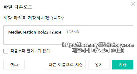 참고로 해당 파일의 이름은 MediaCreationTool22H2.exe입니다.