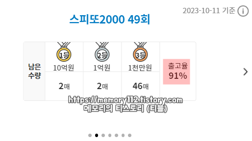 | 스피또2000 49회차 당첨 현황 및 당첨 확률 | ||