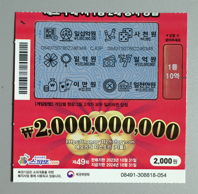 참고로 해당 복권은 23년 07월 10일 월요일부터 판매가 시작되었습니다.