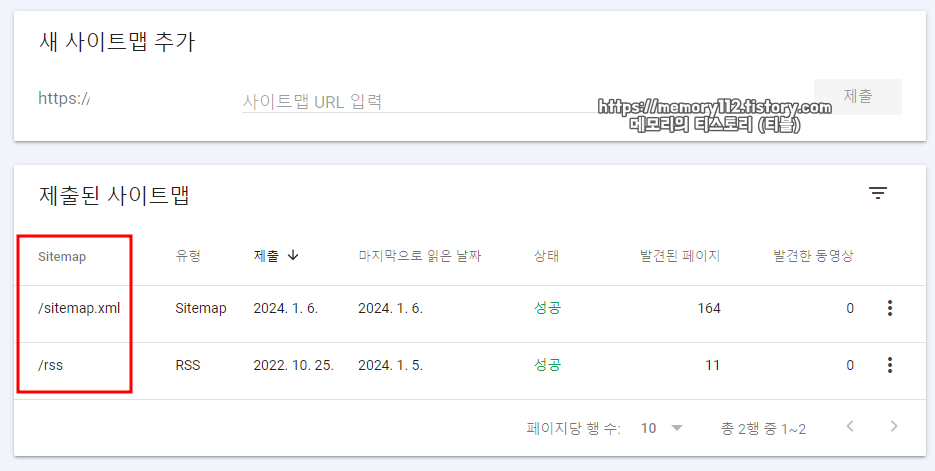 참고로 구글 서치 콘솔 사이트맵 상태는 "구글 서치콘솔 > Sitemaps"를 통해 확인 가능합니다.