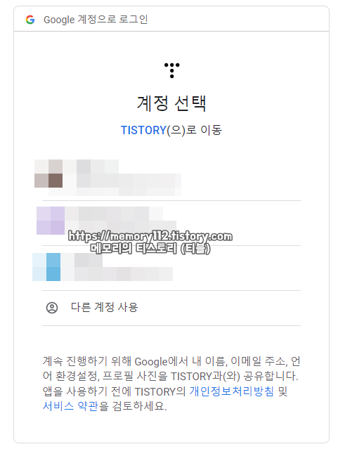 구글 서치 콘솔과 연결해서 사용할 구글 계정을 선택해줍니다. 이후 권한 요청에 모두 동의해줍니다.