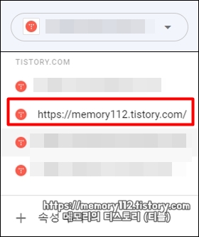 티스토리 구글 서치 콘솔 연결 및 등록을 완료한 후, 구글 서치 콘솔 사이트에 들어가보면 이렇게 목록에 추가된 것을 확인할 수 있을 것인데요. 여기서 해당 블로그를 한 번 클릭해봅시다.